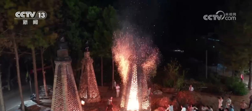 据介绍,西湖李家的火塔塔身由上层砖与下层砖组成品字形搭建,左右各留一口孔洞作为烟雾及火星的出口,塔内熊熊燃烧的火焰承载着村民们对未来生活的美好期盼。