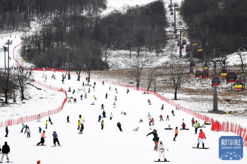 2022年11月19日,滑雪爱好者在吉林省万科松花湖度假区滑雪场滑雪。新华社记者 许畅 摄