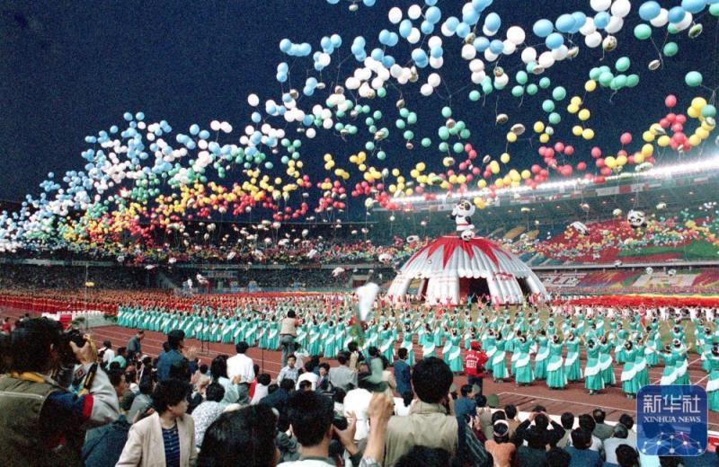 1990年9月22日至10月7日,第十一届亚运会在北京举行。这是中国首次举办国际综合性运动会。图为开幕式现场。 新华社发(资料照片)