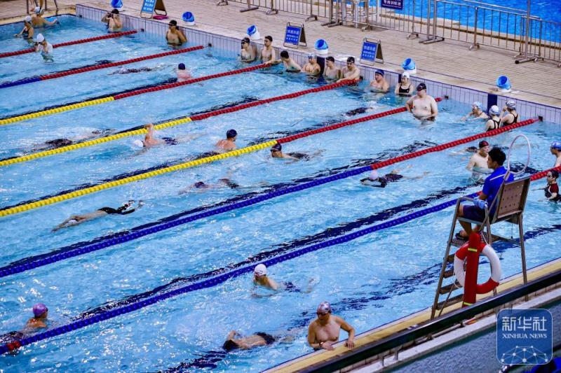 2023年8月21日,市民在天河游泳馆内游泳。天河游泳馆是2010年广州亚运会水球项目的比赛场馆。新华社发(黄晋文摄)