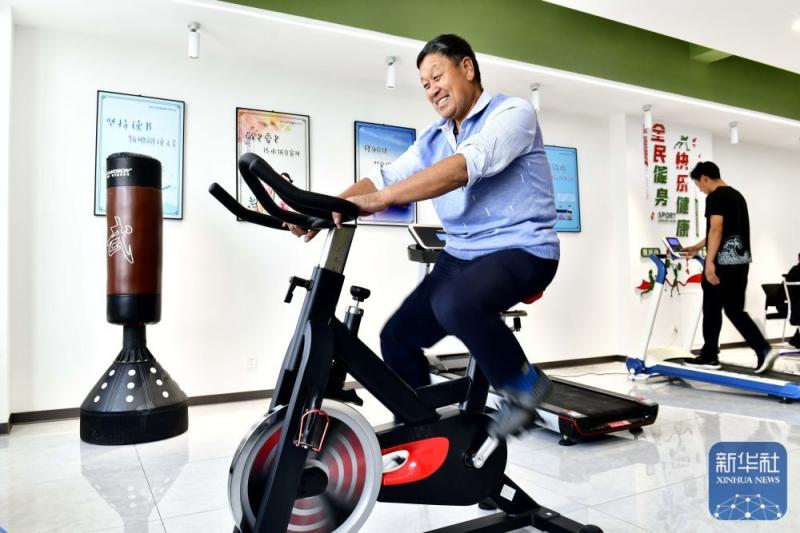2023年10月12日,在山东省惠民县姜楼镇一处百姓健身屋,群众在锻炼身体。新华社记者 郭绪雷 摄