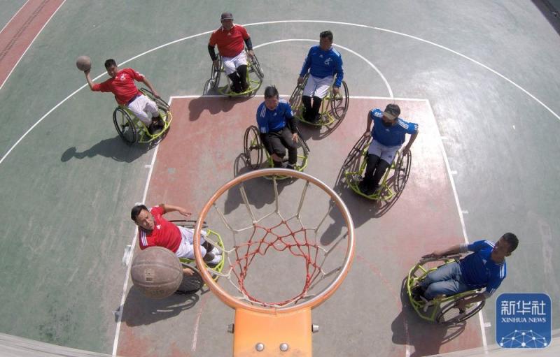 2019年3月3日,西藏拉萨业余轮椅篮球队在训练中。新华社记者 普布扎西 摄