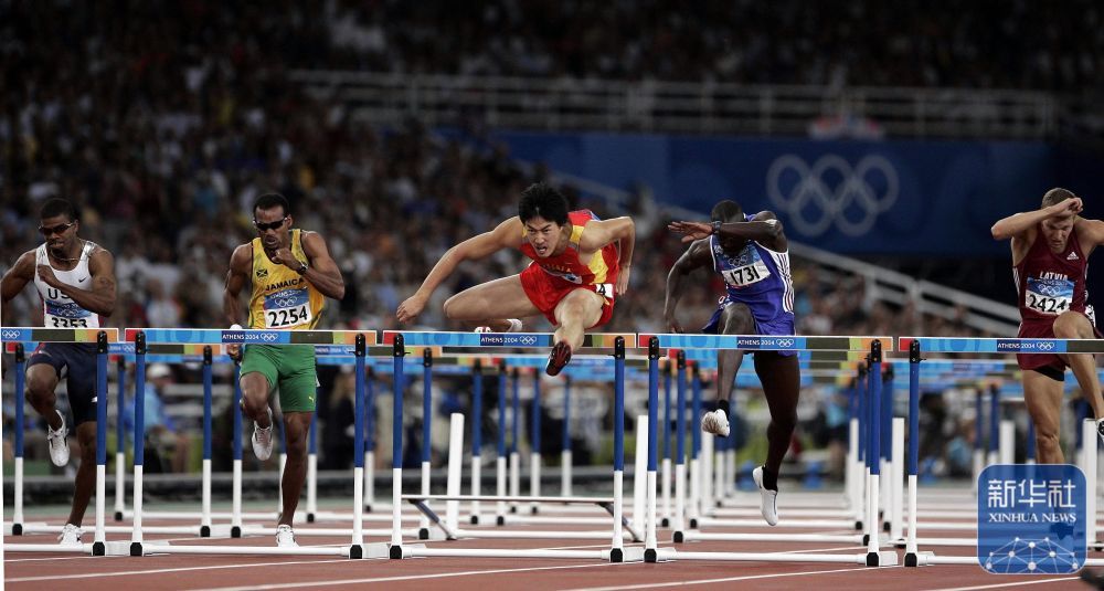 2004雅典奥运会,刘翔以12秒91的成绩夺得男子110米栏比赛冠军,成为中国田径项目第一个男子奥运冠军。新华社记者 李岳 摄