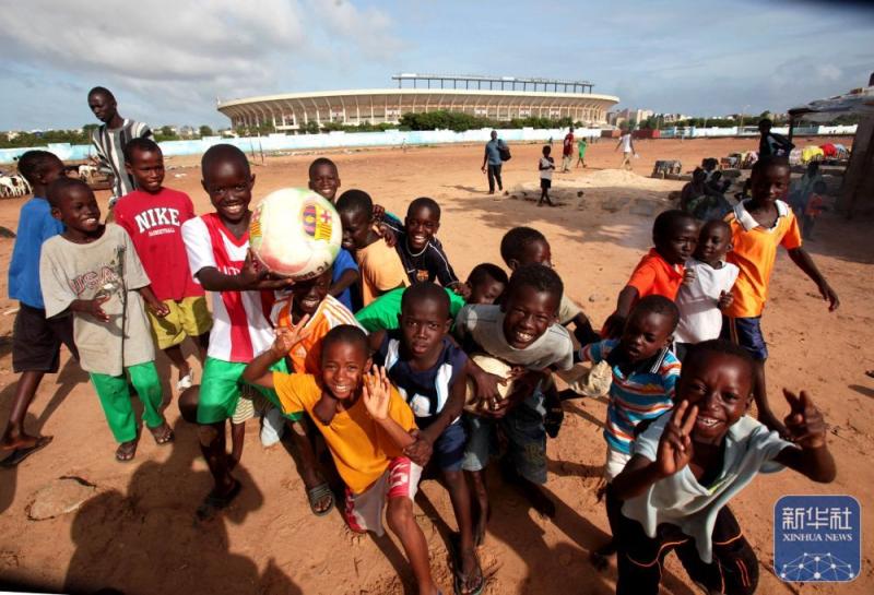 2011年8月21日,在塞内加尔首都达喀尔郊区,一些孩子在中国援建的体育场前踢球。新华社记者 刘宇 摄