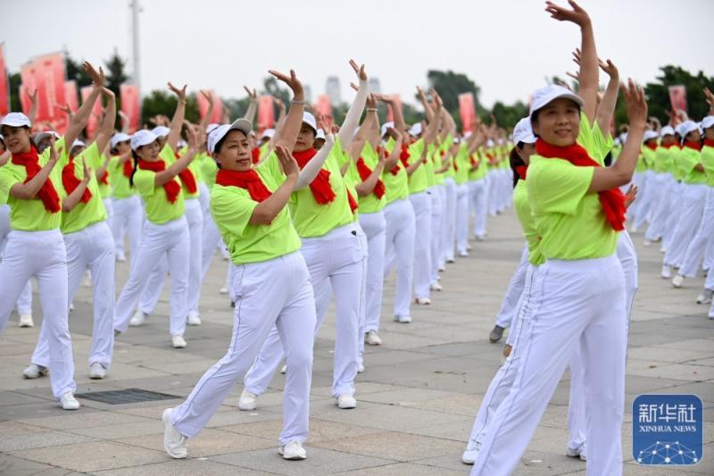 2024年8月8日,在乌鲁木齐举行的2024年全民健身日主题活动启动仪式现场,健身爱好者进行广场舞表演。新华社记者 丁磊 摄