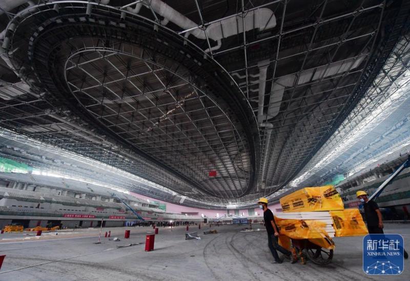 记者探访处于建设改造冲刺阶段的冬奥会北京赛区的国家速滑馆,(2020年7月28日摄)。新华社记者 张晨霖 摄