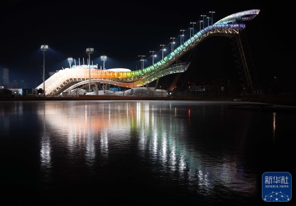 首钢滑雪大跳台造雪工作继续有条不紊进行,赛道上已堆起积雪,其他各项筹备工作也进入冲刺阶段。 这是2021年12月28日拍摄的首钢滑雪大跳台。 新华社记者 陶希夷 摄