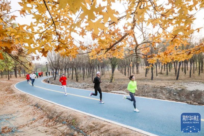 2023年11月1日,在河北省遵化市,长跑爱好者在公园道路晨练。新华社发(刘满仓摄)