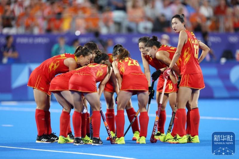 2024年8月9日,中国队球员在巴黎奥运会女子曲棍球金牌赛中讨论短角球战术。中国女曲一路力克强敌,决赛中与世界第一荷兰队战至23米球决胜。新华社记者 任鹏飞 摄