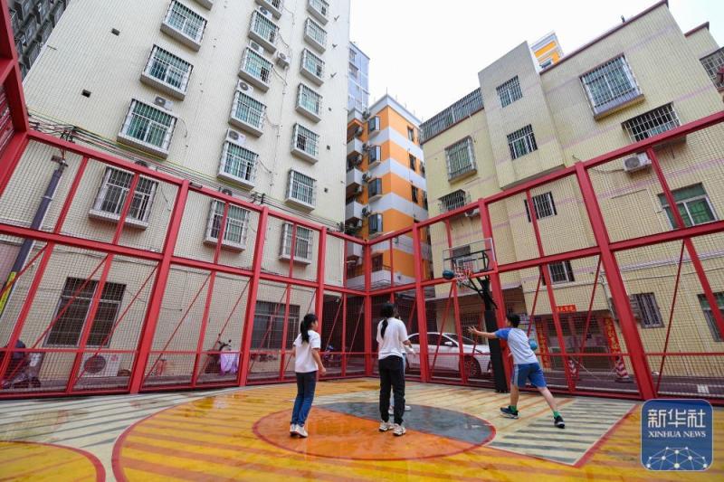 2023年4月2日,在深圳市龙华区元芬村,居民在增设的篮球场打篮球。新华社记者 毛思倩 摄