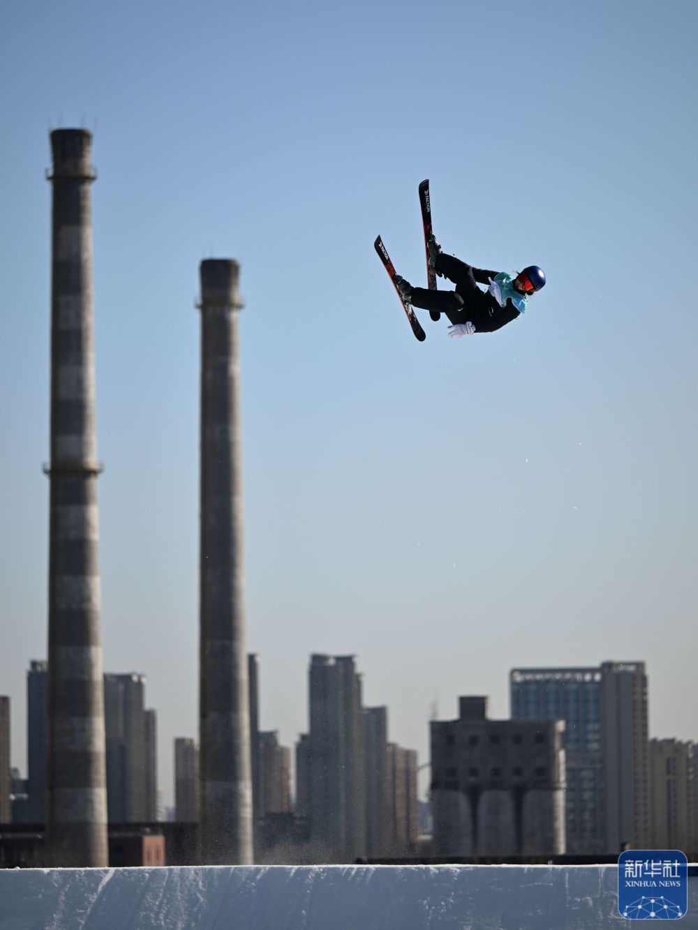 2022年2月8日,谷爱凌在北京首钢滑雪大跳台举行的北京2022年冬奥会自由式滑雪女子大跳台决赛中。 新华社记者 李尕 摄