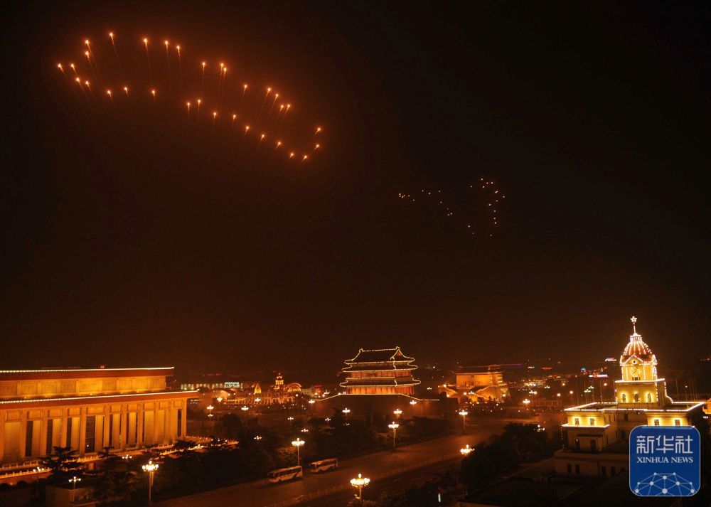2008年8月8日拍摄的天安门广场上空燃放的北京奥运会开幕式焰火《历史足迹》上的脚印。新华社记者 郝远征 摄