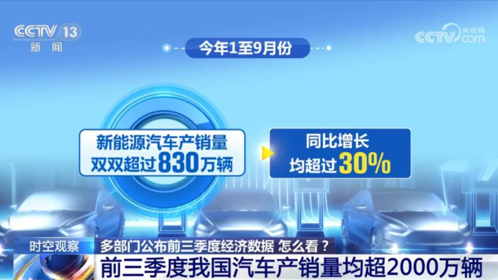 今年1月至9月份,我国汽车产销量分别为2147万辆和2157.1万辆,同比分别增长1.9%和2.4%。其中,新能源汽车产销量双双超过830万辆,同比增长均超过30%。