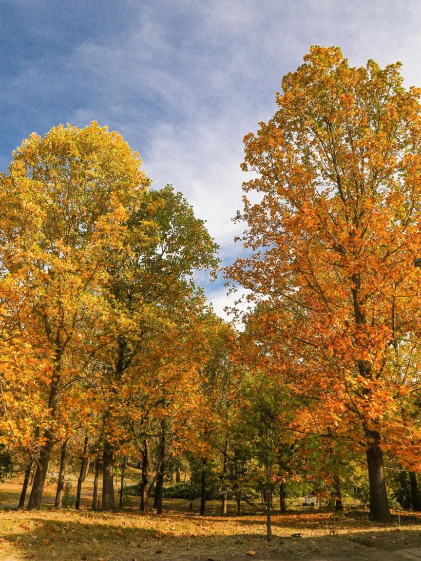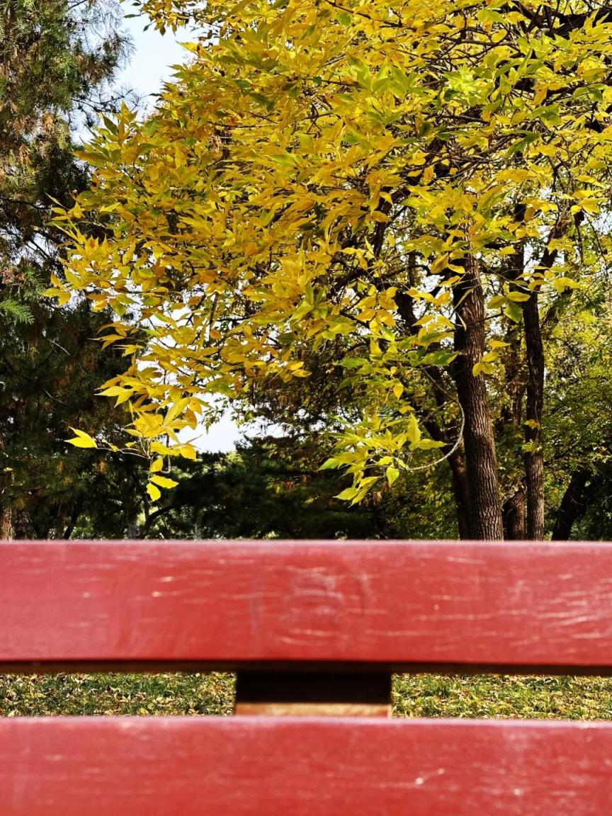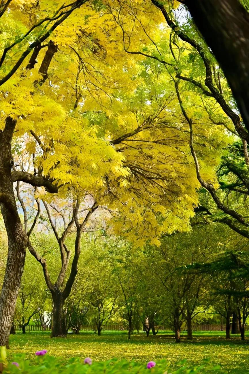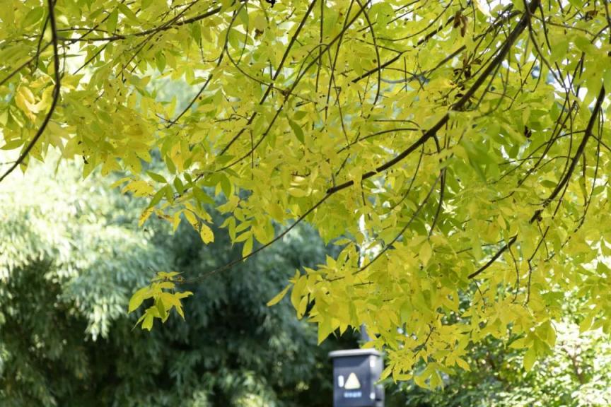 公园东门矗立白蜡树,身姿挺拔,枝叶如盖,率先披上秋的金裳。其叶转黄,纯粹而灿烂,秋风起时,金叶翩跹,宛若蝴蝶轻盈舞动,织就一幕幕秋日童话,美不胜收。