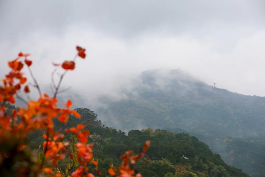 彩叶环绕,湖光山色,近距离打卡或亭中小憩静静欣赏都是不错的选择,更可远眺香炉峰,红绿黄的色彩融合,壮阔开朗。