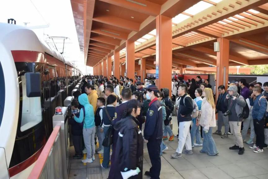 为保障游客出行,本周末首班车起,有轨电车西郊线将在周末上线10组重联列车运行加大运力,最小发车间隔5分钟,相较去年同期最大运力提升9%。
