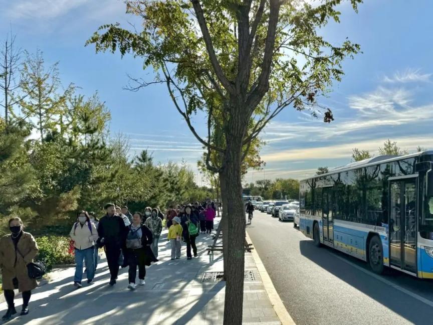 有轨电车西郊线分公司经理王伟说,根据客流情况,在巴沟站适时开启出站免检模式,无需刷卡刷码,直接出站设立了团队购票窗口,编制临客加开计划。高峰日期间,西郊线巴沟站台将增加进站通道,放置移动闸机,同时将出站口两台闸机调整为进站模式,客流高峰时段从原有的5通道模式增加至8通道进站模式,与地铁10号线进行了联动,适时调整运营间隔。同时,红叶观赏期周末上午的10:00至中午12:00下午15:00至18:00,分别在巴沟站、国家植物园站、香山站外安排公交支援车,建议大家错峰出行。