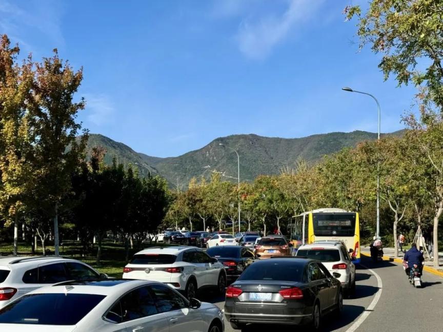 随着红叶观赏高峰日的到来,预计香山地区停车场将在每天早间时段就达到饱和,提醒计划前往香山的市民群众,西郊线香山站下车后距离香山公园只有600米,比自驾车出行节省较长的步行距离。