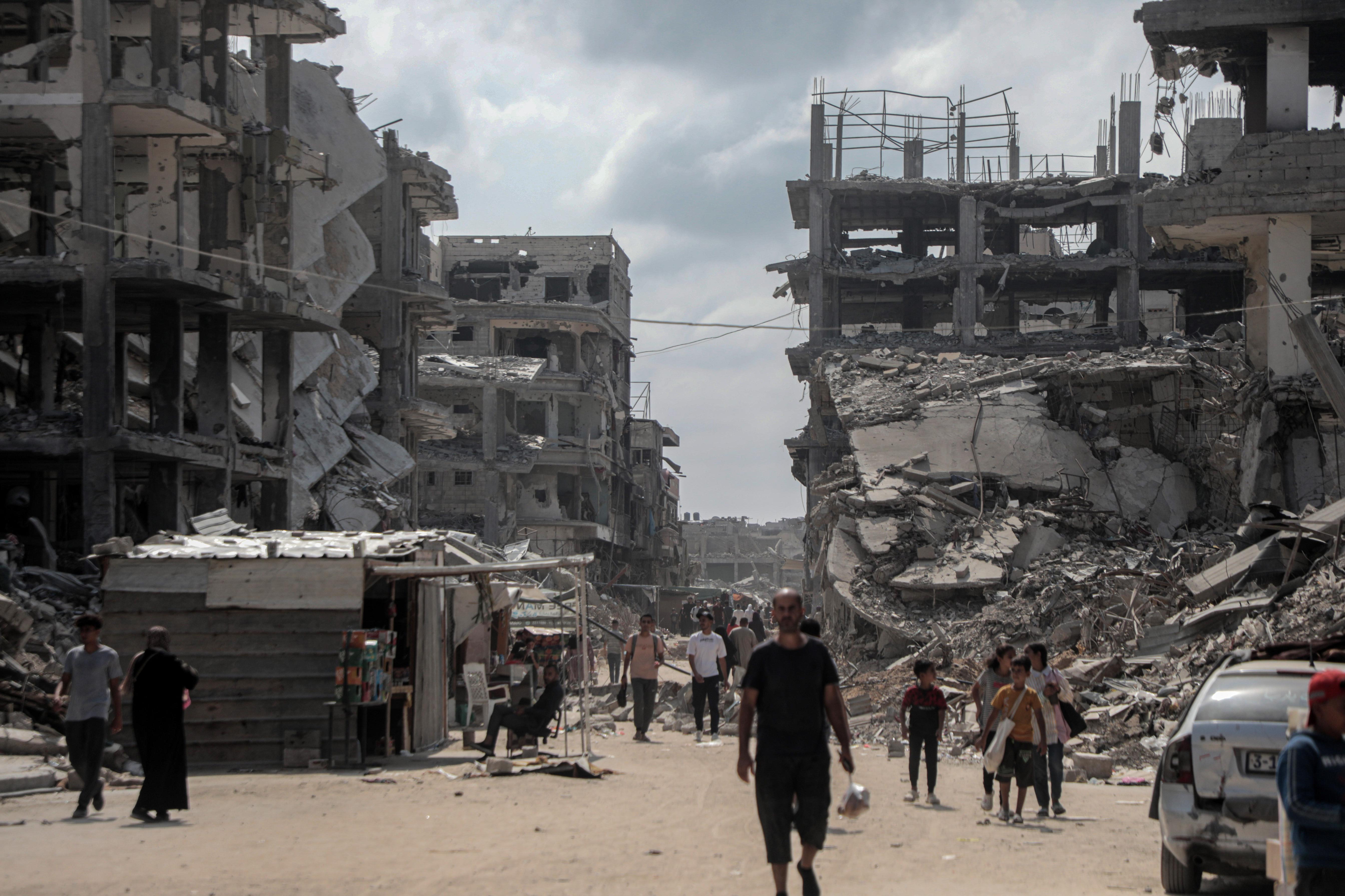 这是10月6日在加沙地带南部汗尤尼斯拍摄的废墟。新华社发(里泽克阿卜杜勒贾瓦德摄)