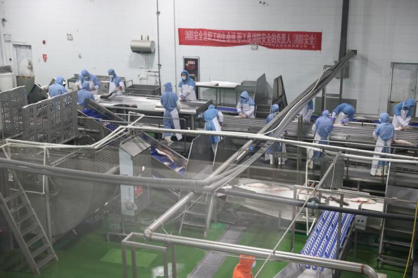 在宰杀放血之前,会先用电击片把鱼儿电晕过去,以减轻痛苦;在放血后立即进入保温箱,用碎冰覆盖,并迅速运往加工车间;加工包装好的鱼,要在三小时内,用冷链物流运往全国各地