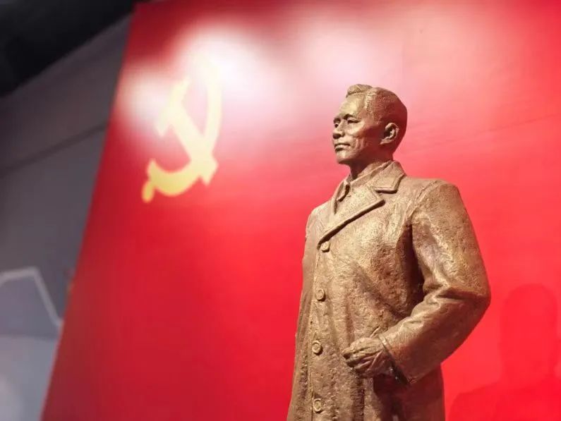 拼版照片:左图为中央党校(国家行政学院)校园内的焦裕禄雕塑;右图为中央党校(国家行政学院)校园内的谷文昌雕塑