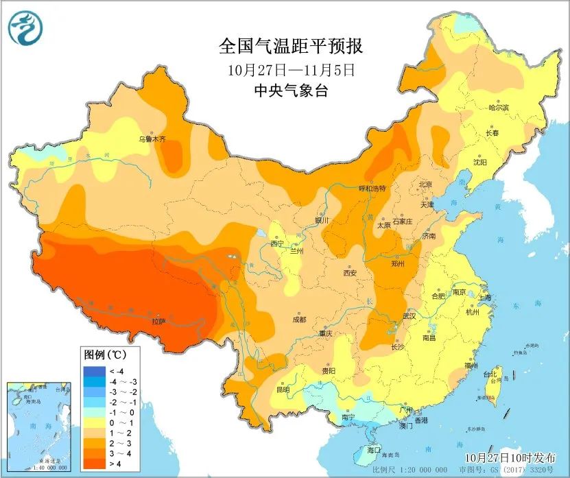今天,上一股弱冷空气的影响已经进入尾声,受其影响,东北、华北、黄淮等地出现了不同程度的降温。预计下周,在11月3日之前,我国将没有明显的冷空气活动,气温整体较为稳定,全国大部气温主要以偏高为主,最高气温20℃线位于四川盆地北部到华北南部一线。