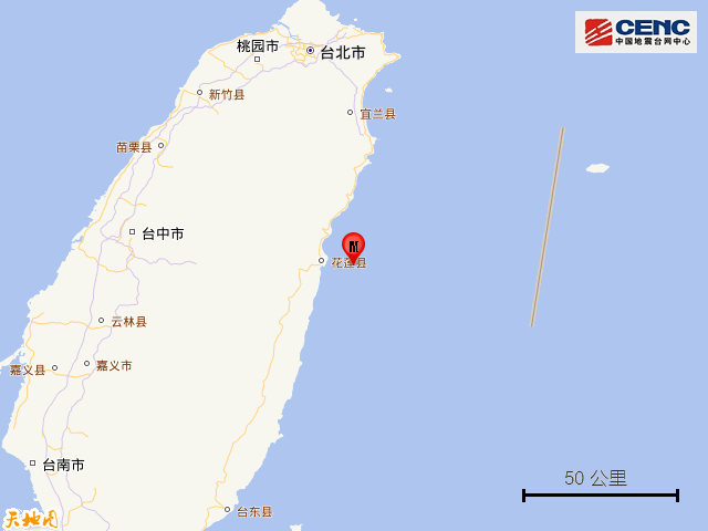 据中国地震台网正式测定,10月27日18时21分在台湾花莲县海域发生4.8级地震,震源深度31公里,震中位于北纬23.97度,东经121.78度,距台湾岛约13公里。