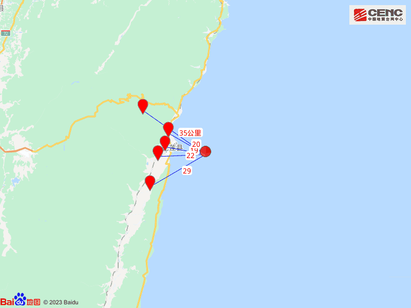 周边县城:震中距花莲市19公里、距新城乡20公里、距吉安乡22公里、距寿丰乡29公里、距秀林乡35公里,距花莲县16公里,距台北市121公里。