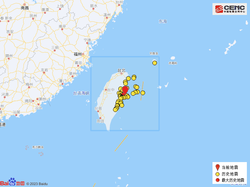 历史地震:根据中国地震台网速报目录,震中周边200公里内近5年来发生4级以上地震共367次,最大地震是2024年4月3日在台湾花莲县海域发生的7.3级地震(距离本次震中18公里),按震级大小前50次历史地震分布如图。