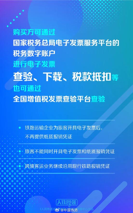 铁路运输企业为旅客开具电子发票后,不再提供纸质报销凭证,旅客不能同时开具电子发票和纸质报销凭证。