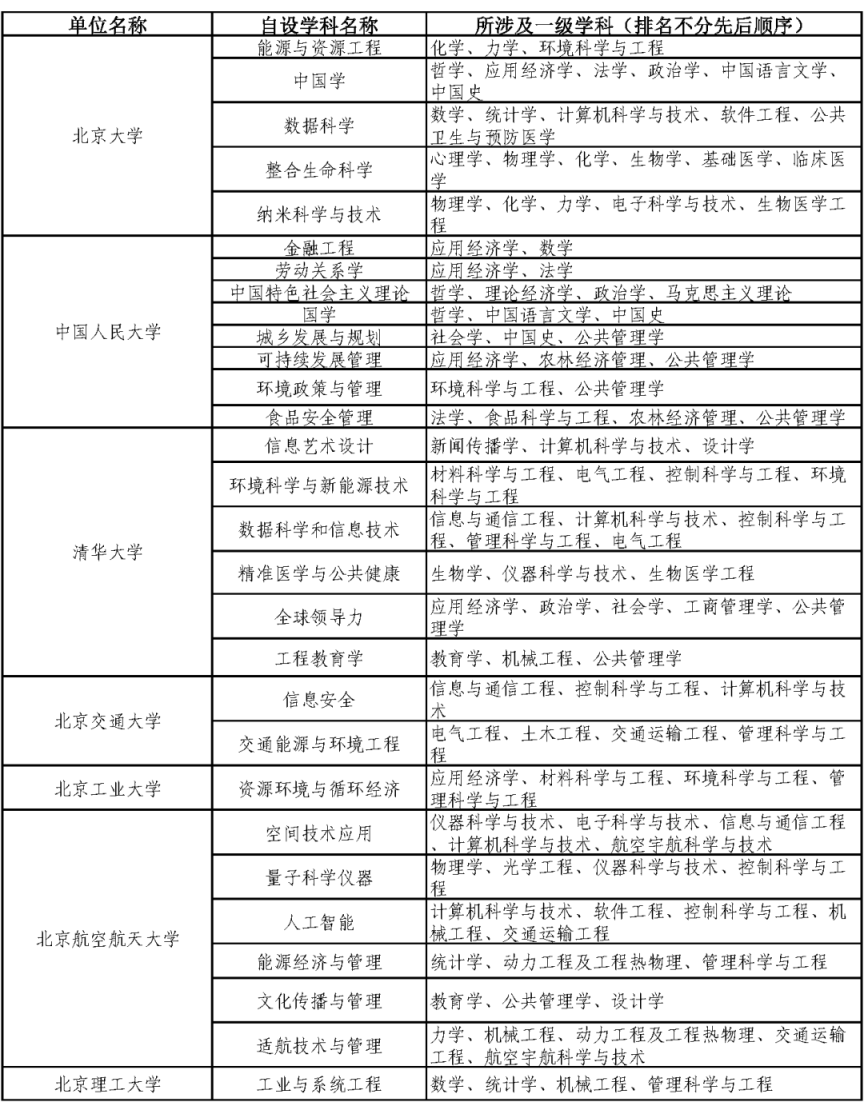 据统计,此次公布的名单共涉及北京32所高校,137个自设交叉学科。