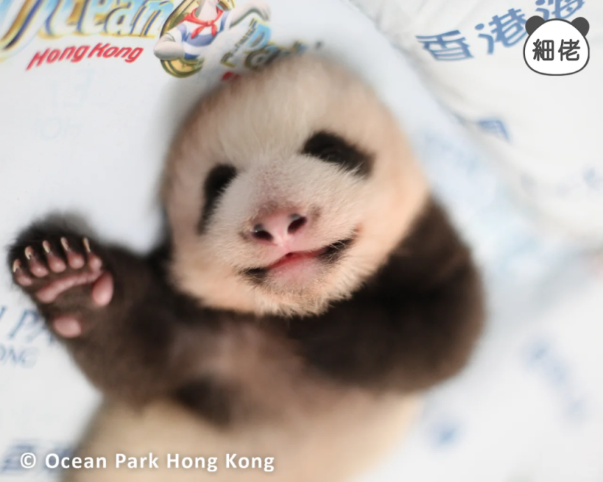 香港海洋公园表示,每一只大熊猫的小背心都是独一无二的。
