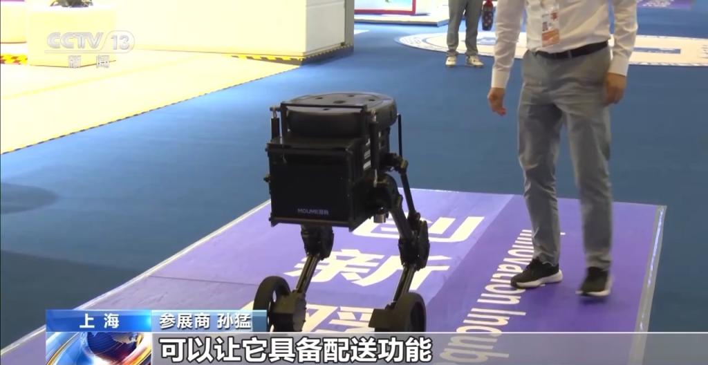 总台央视记者 李厦:在本届进博会上全球首发一款双轮足机器人。什么叫双轮足?它有两条腿,但是下面的脚是被轮子替代了。这种设计的好处首先是特别灵活,特别稳,同时它的行进速度又特别快,能够适应各种复杂的地形地况,所以在工业巡检、短途配送方面都能发挥非常强大的作用。