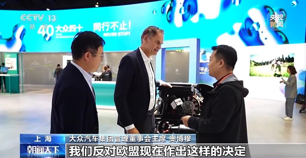 大众汽车集团管理董事会主席 奥博穆:大众汽车集团支持公平自由贸易,我们反对欧盟现在作出这样的决定,我们认为其实更好的做法应该是不要有这么高的税率,而是在一个相对更加低的税率情况下,鼓励支持企业去投资于工厂、投资于技术、投资于人力资源,这样让双方都能够获益。