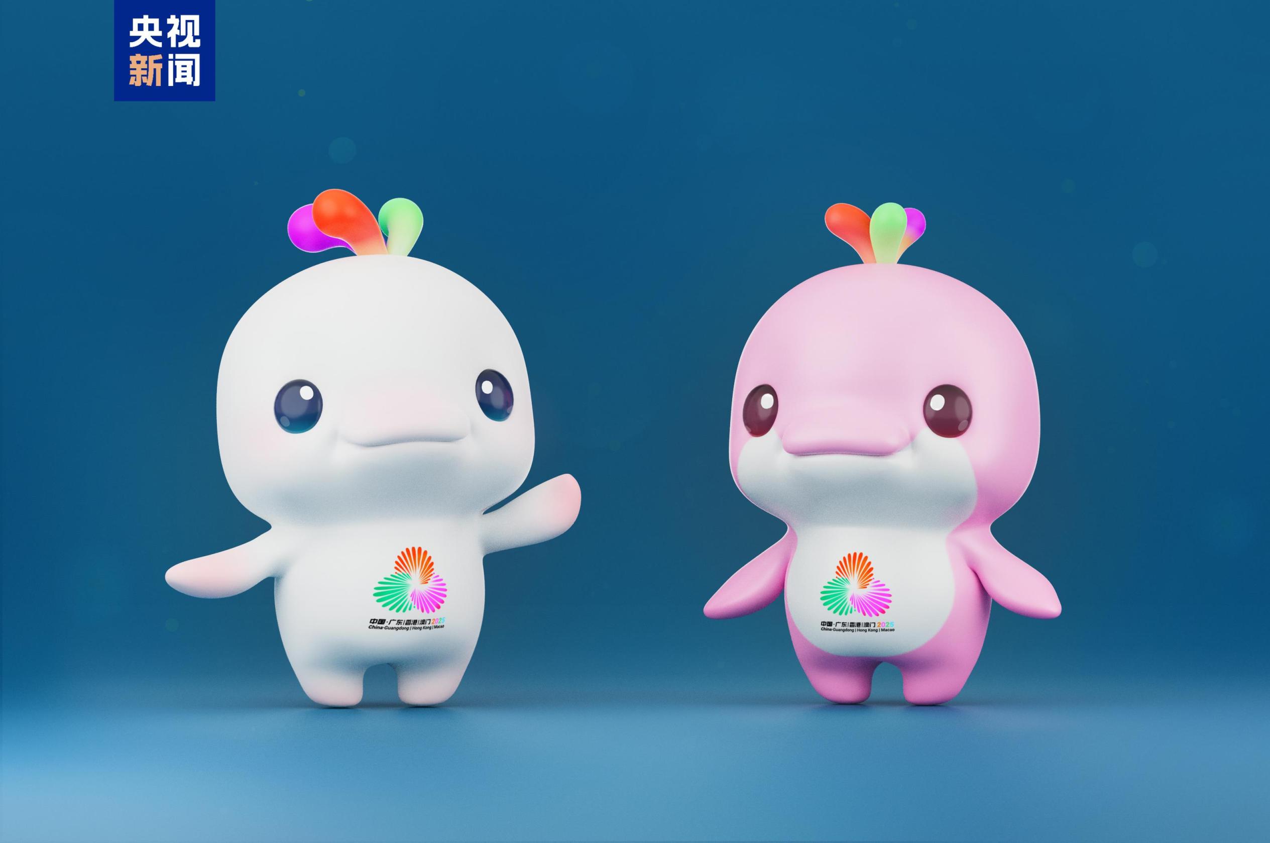 十五运会和残特奥会吉祥物是一对中华白海豚,白色海豚与粉红色海豚分别命名为喜洋洋与乐融融,外形相似又各具特色。