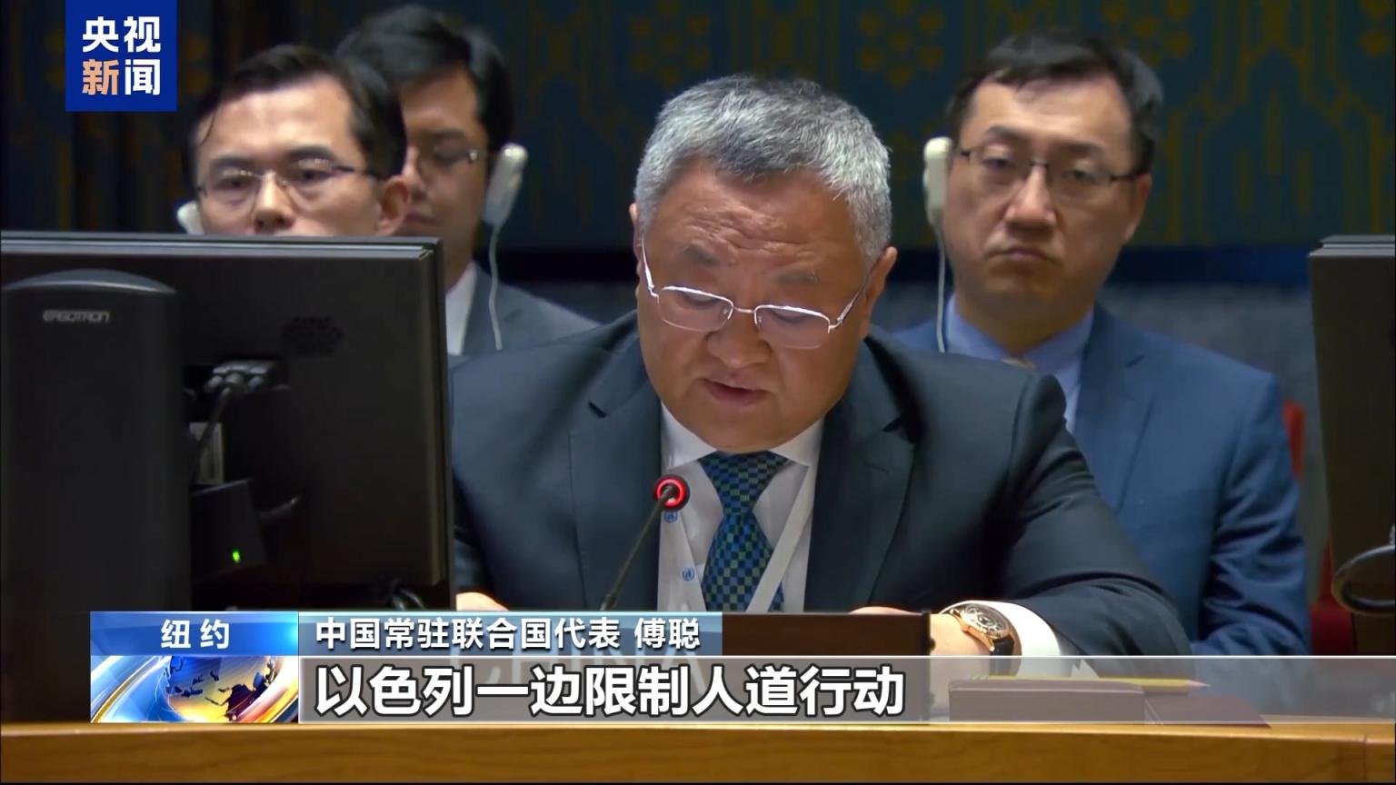 中国常驻联合国代表 傅聪:以色列一方面限制人道行动,另一方面指责联合国和人道机构不作为,这不可接受。我们呼吁以色列与联合国等人道机构开展全面合作,保障人道机构的安全和便利。