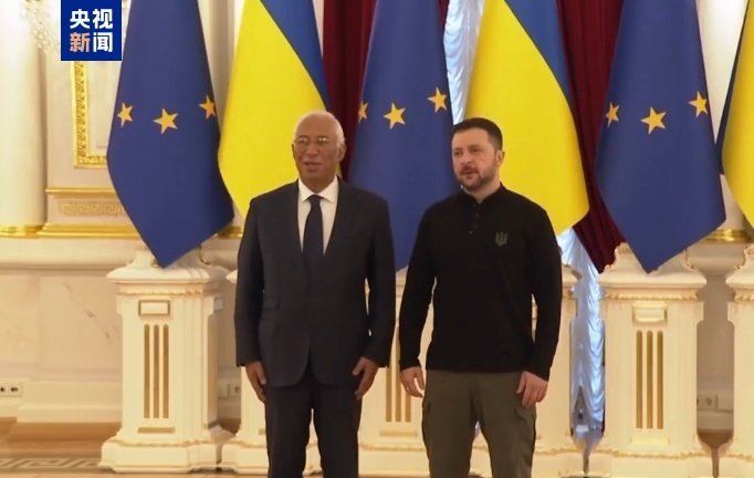 △欧洲理事会主席科斯塔(左) 乌克兰总统泽连斯基(右)