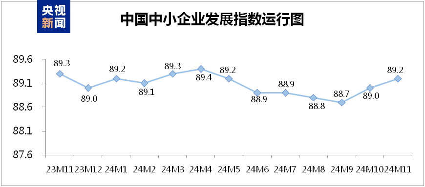 中国中小企业协会今天(10日)发布,11月中国中小企业发展指数为89.2,相比10月上升0.2点,连续2个月上升。