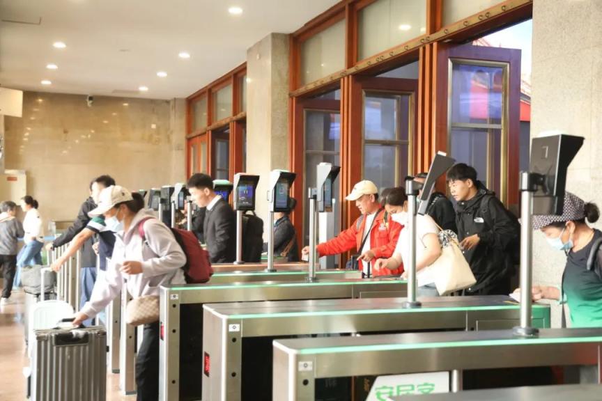 为提高旅客进出站检票通行能力,该站还改造了进出站验检厅、二层西预检厅,移设37台闸机、7台安检仪,增加10条检票通道,大大提高了旅客通过效率。