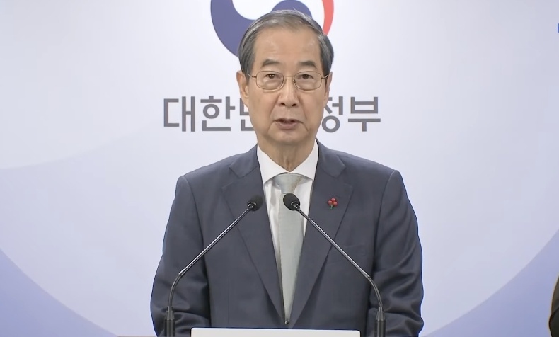 △代行总统职权的韩国国务总理韩德洙14日发表对国民谈话。