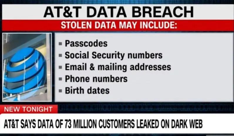 美国电话电报公司(ATT)7300万用户信息被泄露至暗网。泄露数据包括客户全名、联系方式、社保号、邮箱、地址、电话、生日等。ATT作为美国第三大零售无线运营商,拥有庞大的客户群体和市场份额。该公司今年两次发生此类用户数据泄露事件。