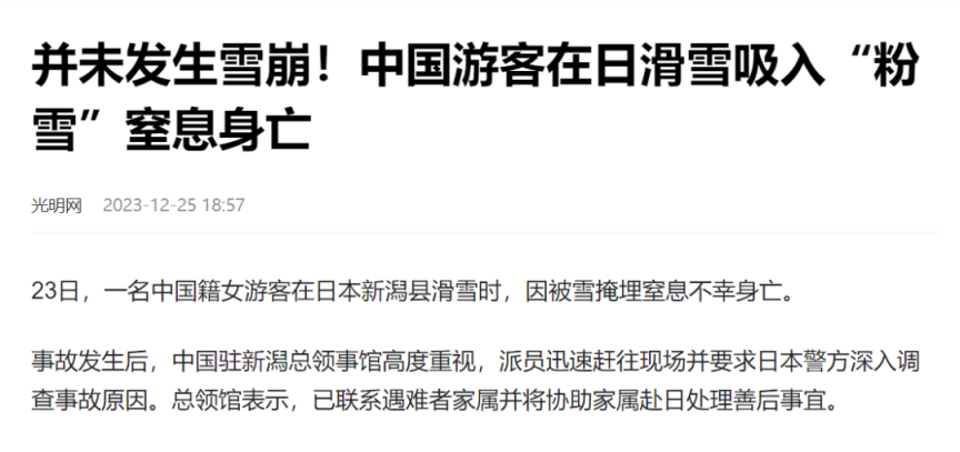 日本媒体引述滑雪爱好者称