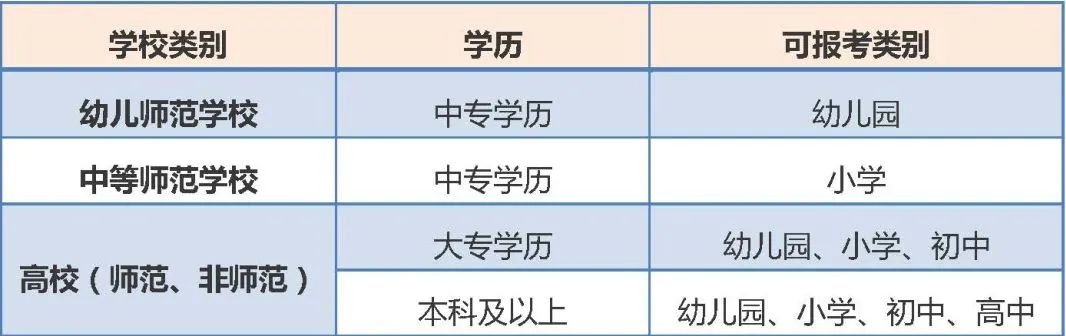 中小学教师资格考试包括幼儿园、小学、初中、高中四个类别。申请认定中等职业学校文化课教师资格、中等职业学校专业课和中等职业学校实习指导教师资格者参加高中类别的考试。