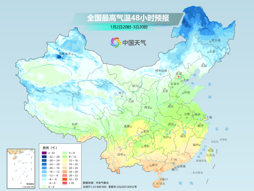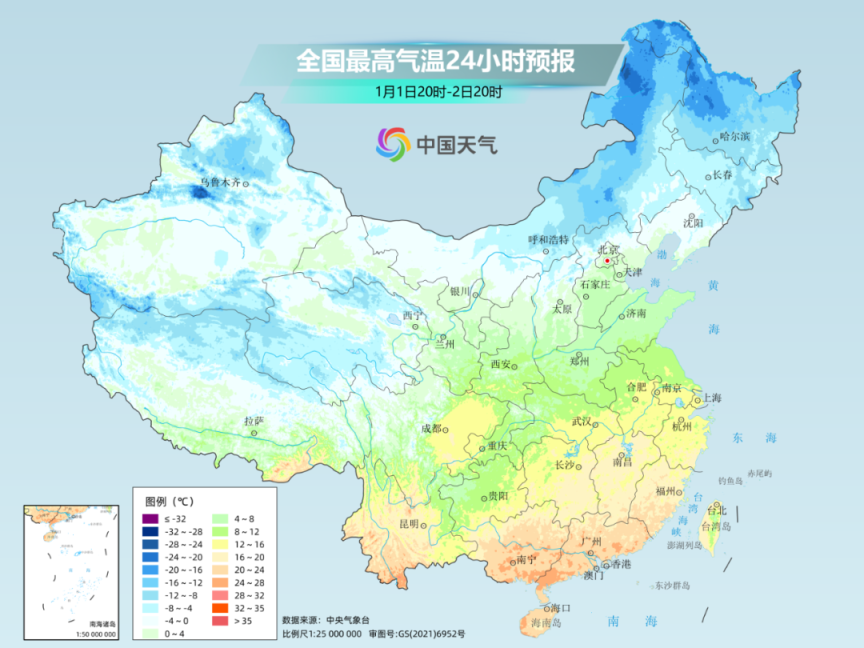 1月1日至3日,将有一股有弱冷空气影响中东部地区,以大风降温为主,无明显雨雪天气。内蒙古中东部、东北地区等地部分地区有4级左右、阵风6~7级的偏北风,局地阵风8级;气温下降4~6℃,内蒙古东北部、黑龙江局地等地降温8℃左右,南方地区降温2~4℃。