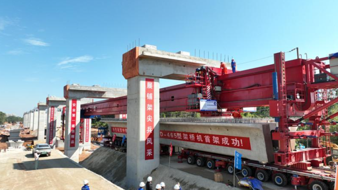 11月28日,全球首台千吨级多模式新能源架桥机应龙号在珠肇高铁江机段JJZQ-8标完成首架任务,标志着由中国中铁工业旗下中铁科工研制的全球首台千吨级新能源架桥机研制成功。该台新设备在千吨级架桥机基础上,配置增程器+动力电池动力源系统及其控制策略,首次将新能源技术应用在架桥机上,应用后设备燃油消耗可节省40%。