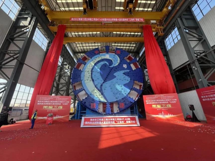 10月31日,由中国铁建重工集团、中铁十四局集团联合打造,最大开挖直径达16.64米的超大直径盾构机江海号在湖南长沙下线。这是由我国科研人员自主研制出的最大直径盾构机。下线后,它将应用于目前世界最长公路水下盾构隧道海太长江隧道的施工。