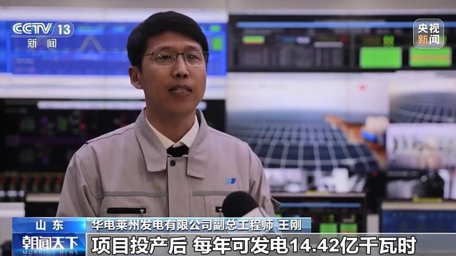 华电莱州发电有限公司副总工程师 王刚:项目投产后,每年可发电14.42亿千瓦时,大约能满足50万户家庭一年的用电量。年节约标煤44.4万吨。