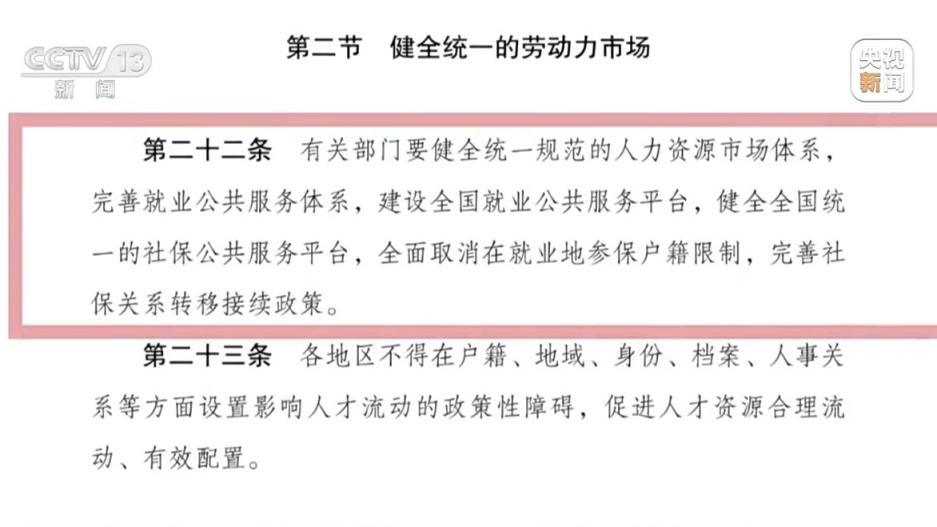 不久前,国家发展改革委印发《全国统一大市场建设指引(试行)》的通知,明确全面取消在就业地参保户籍限制。