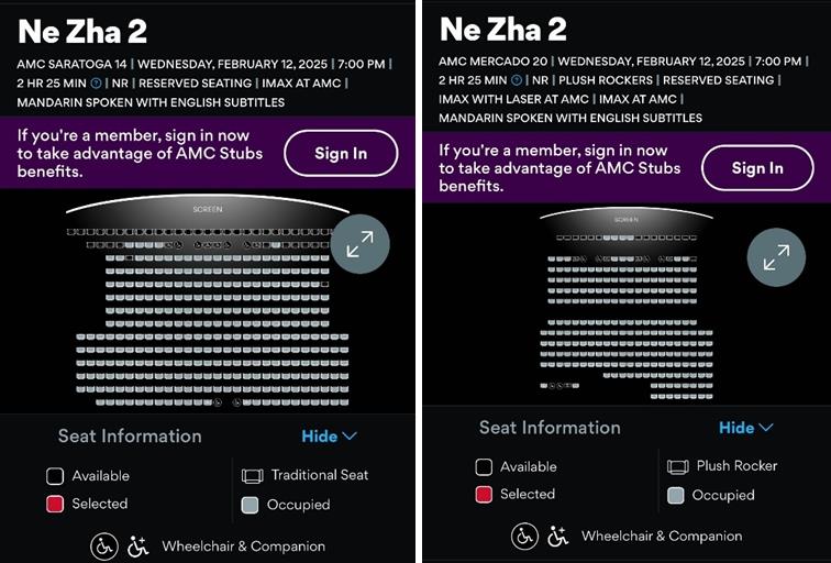 据介绍,《哪吒2》将于2月12日起在北美地区开启特别制式点映,2月14日正式上映。美国多家影院在线售票座位图显示,《哪吒2》的提前点映以及正式上映当日的热门场次已经售罄。