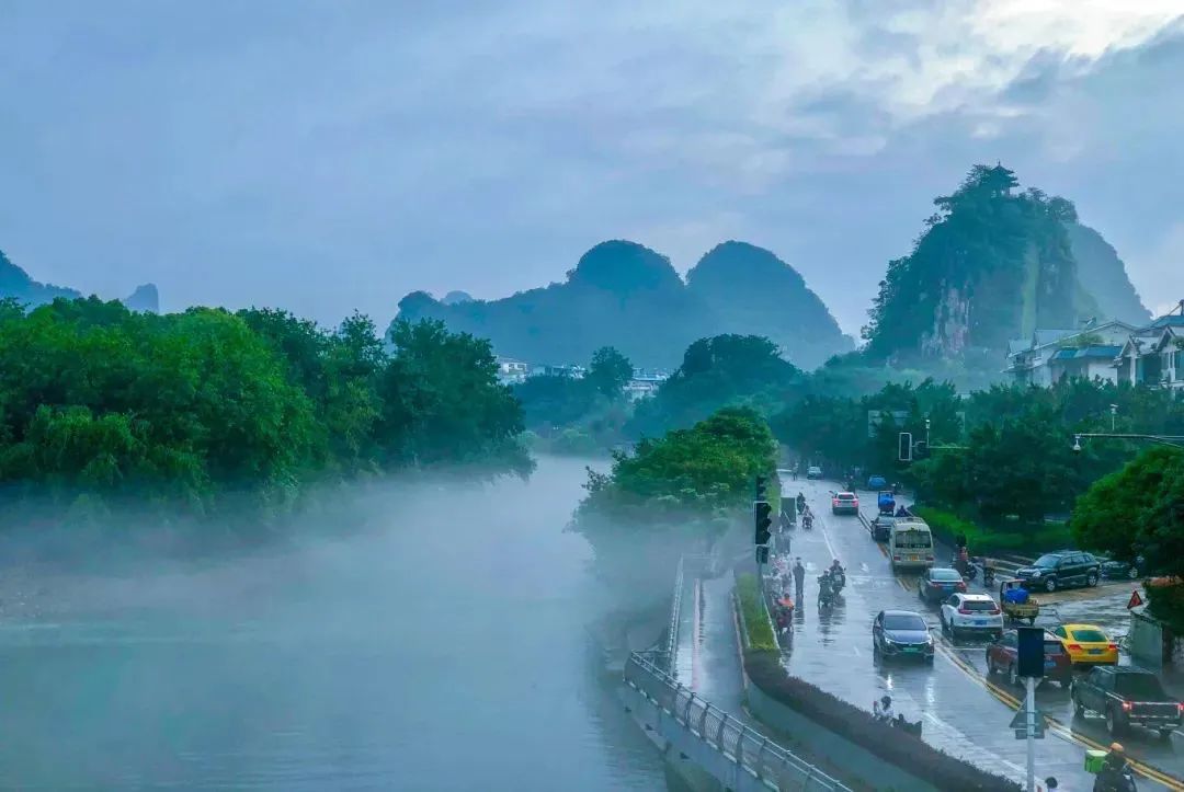 位于桂林市下辖阳朔县,桂林的喀斯特地貌风光、20元人民币背景图案取景地等桂林山水的精华都在阳朔站附近。